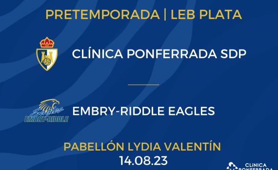 El equipo “LAS AGUILAS DE EMBRY-RIDDLE” de la liga universitaria NCAA-II, perteneciente a la universidad americana de “Embry Riddle Aeronautical University” Daytona Beach, (Florida), donde milita el canterano del CB CIUDAD DE PONFERRADA, David Velasco, será el primer rival del Clínica Ponferrada SDP de la pretemporada 2023/2024, que se disputará el próximo 14 de agosto….