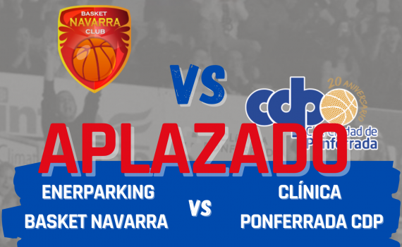 Tras la comunicación de la Federación Española de Baloncesto, el partido que se iba a disputar este sábado en el Polideportivo de Arrosadía entre Enerparking Basket Navarra y Clínica Ponferrada CDP, queda aplazado, tras detectarse 3 casos de CoVid-19 en nuestra plantilla en el día de ayer, que se confirmaron esta mañana con los test…